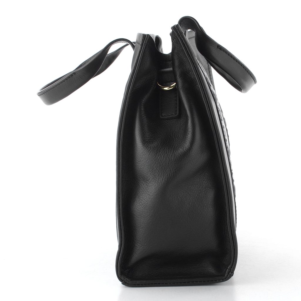 Luxusní dámská kožená kabelka v černé barvě s odepínatelným širokým crossbody popruhem.
