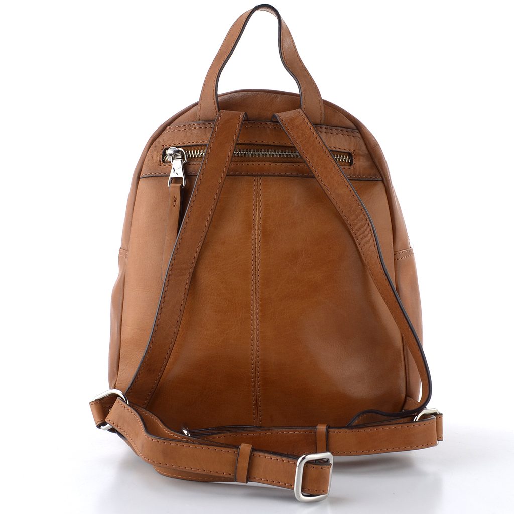 Dámský módní kožený batoh v přírodní hnědé barvě a v kompaktním střihu.