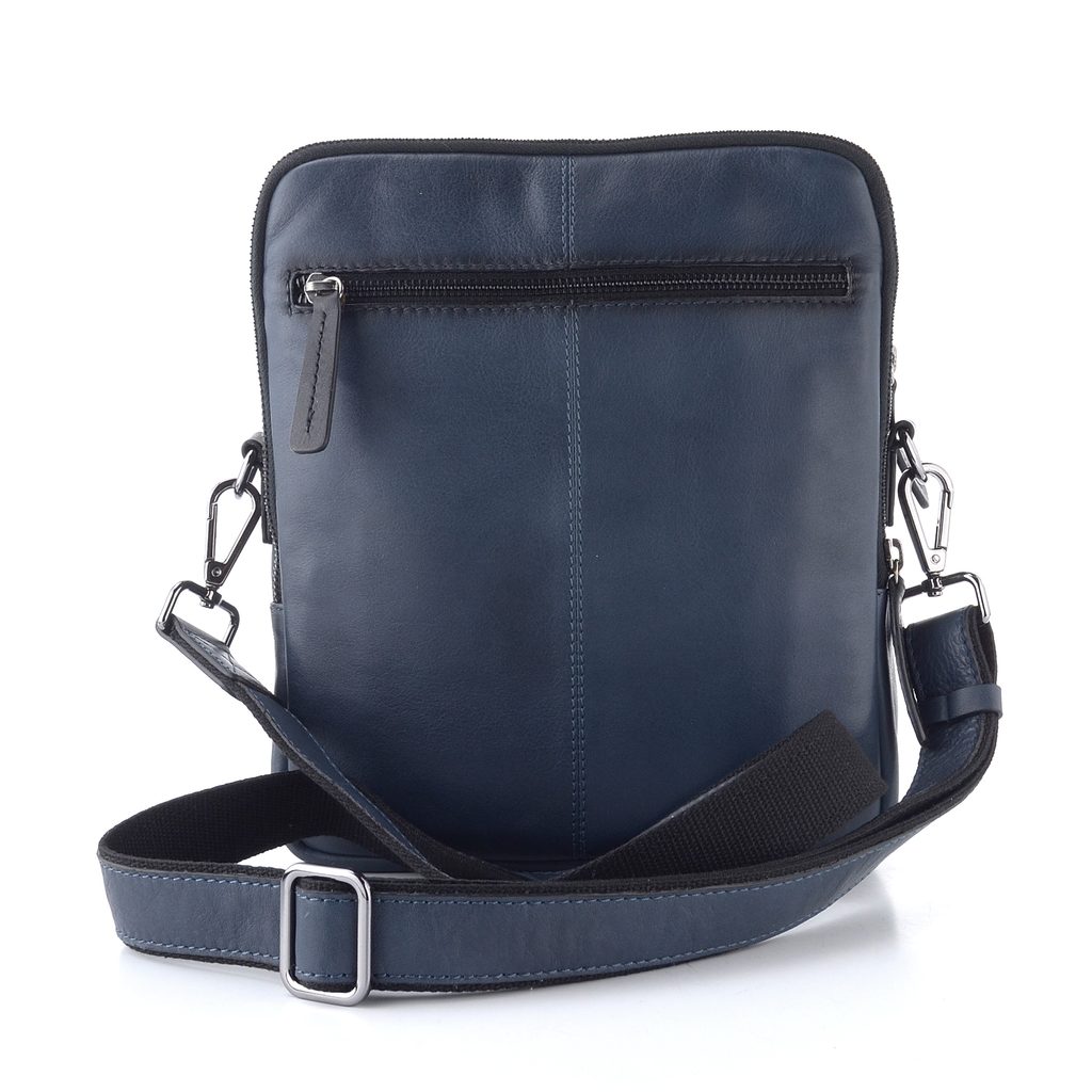 Pánská kožená kabela v modro-černé barevné kombinaci s praktickými kapsičkami a nastavitelným popruhem.