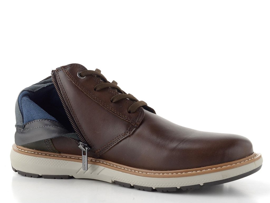 Pánský kožený šněrovací kotník bez vnitřního zateplení, s postranním zipem a vyjímatelnou vnitřní vložkou.