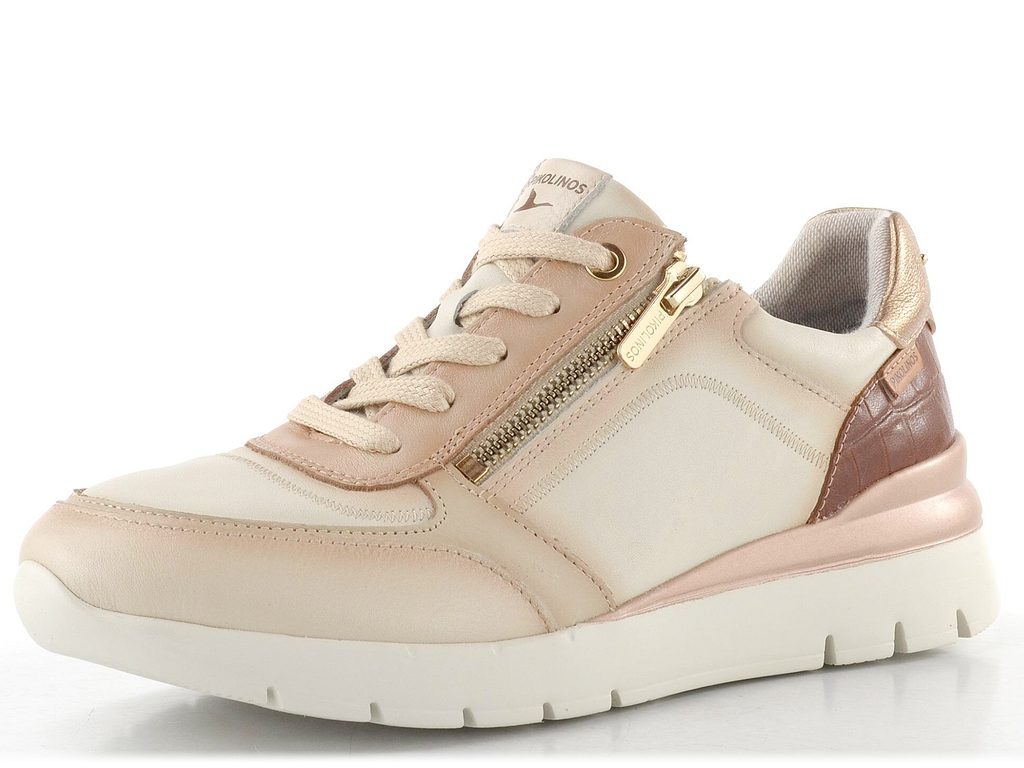Dámské kožené polobotky/tenisky v krémové barvě s funkčním postranním zipem a vyjímatelnou vložkou.