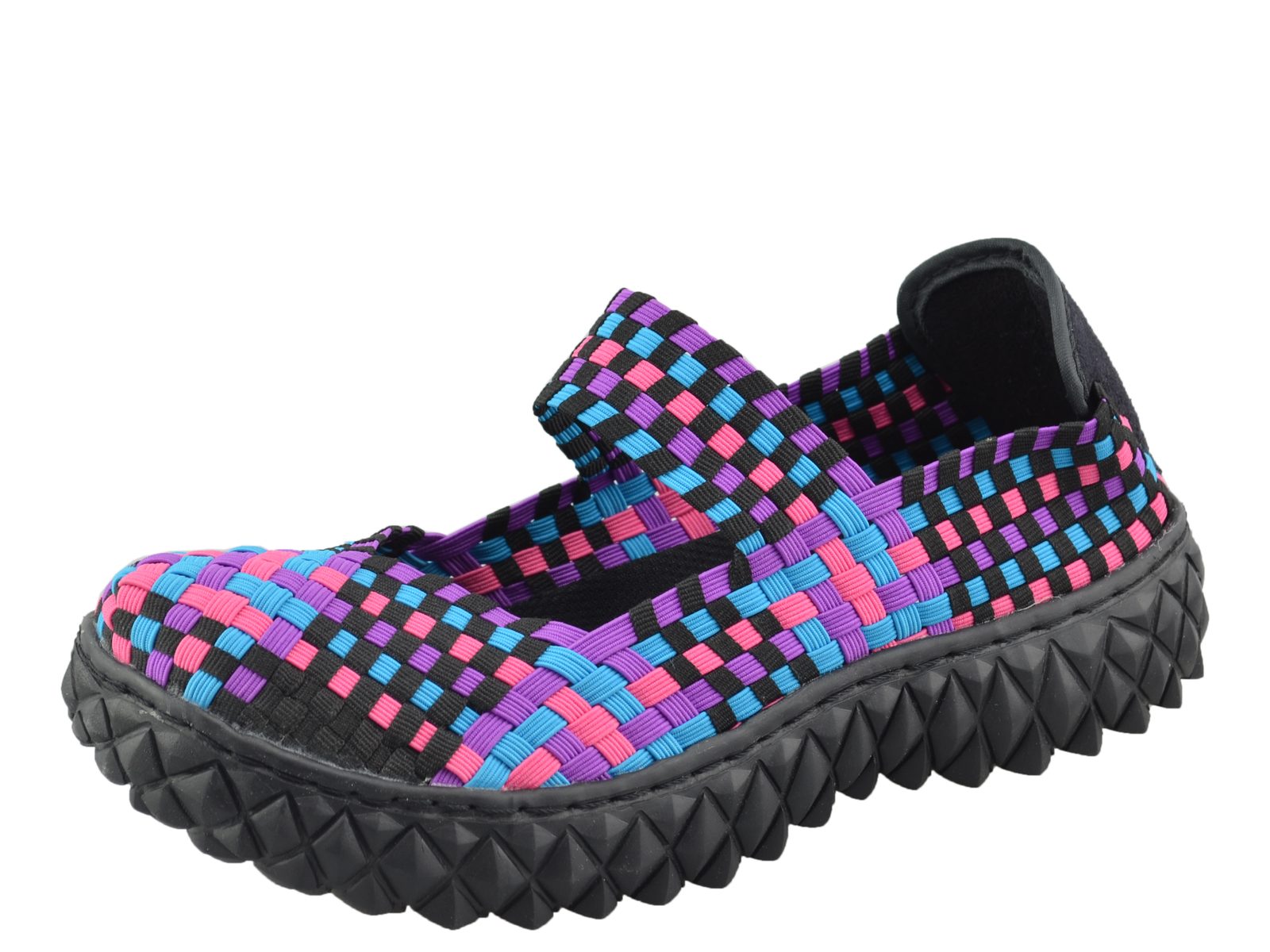 Naprosto nepřehlédnutelné, zákazníky velmi oblíbené, vzdušné "gumičkové" polobotky s nártovým páskem od značky Rock Spring jsou volnočasovým, ležérním typem obuvi do města i do přírody. Ručně proplétané gumičky ve fialové, růžové, černé a tyrkysové variaci jsou v dokonale padnoucím a vysoce komfortním střihu. Díky pružnosti materiálu obuv skvěle padne, nikde netlačí a je velmi příjemná i na bosé chodidlo. Textilní nášlapná stélka uvnitř obuvi je vyměkčena šlehaným latexem. Obuv je možno prát při šetrném programu a maximálně pěti pracích cyklech.