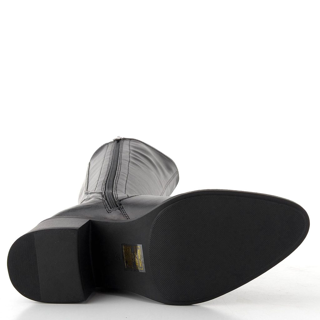 Dámské luxusní kozačky z jemné kůže s pružným lýtkem, teplejší podšívkou a pohodlným širokým podpatkem.