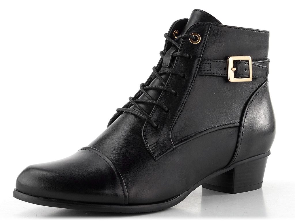 Dámský šněrovací kotník z hladké kůže, se šněrováním, postranním zipem a pohodlným nízkým podpatkem.