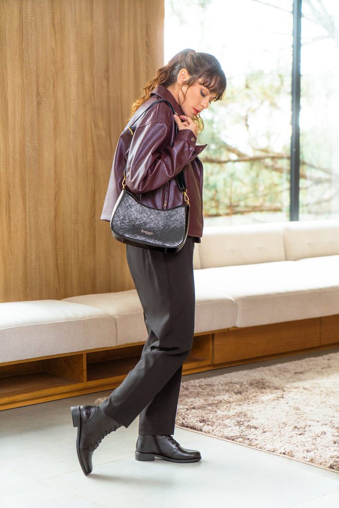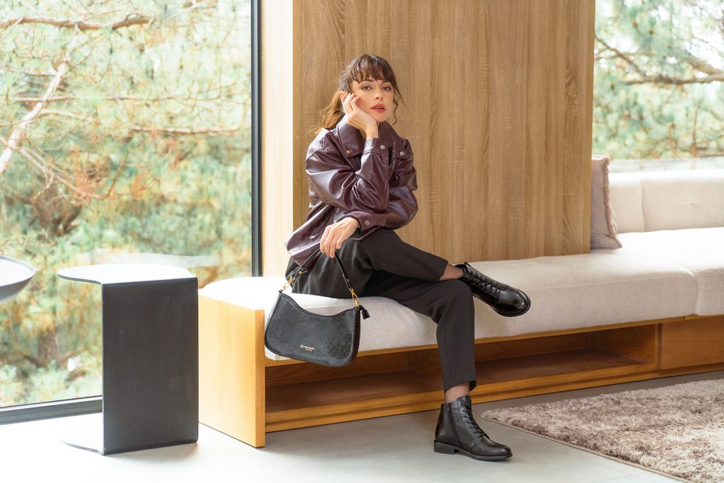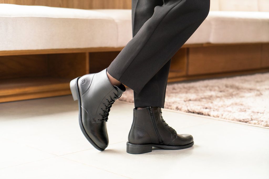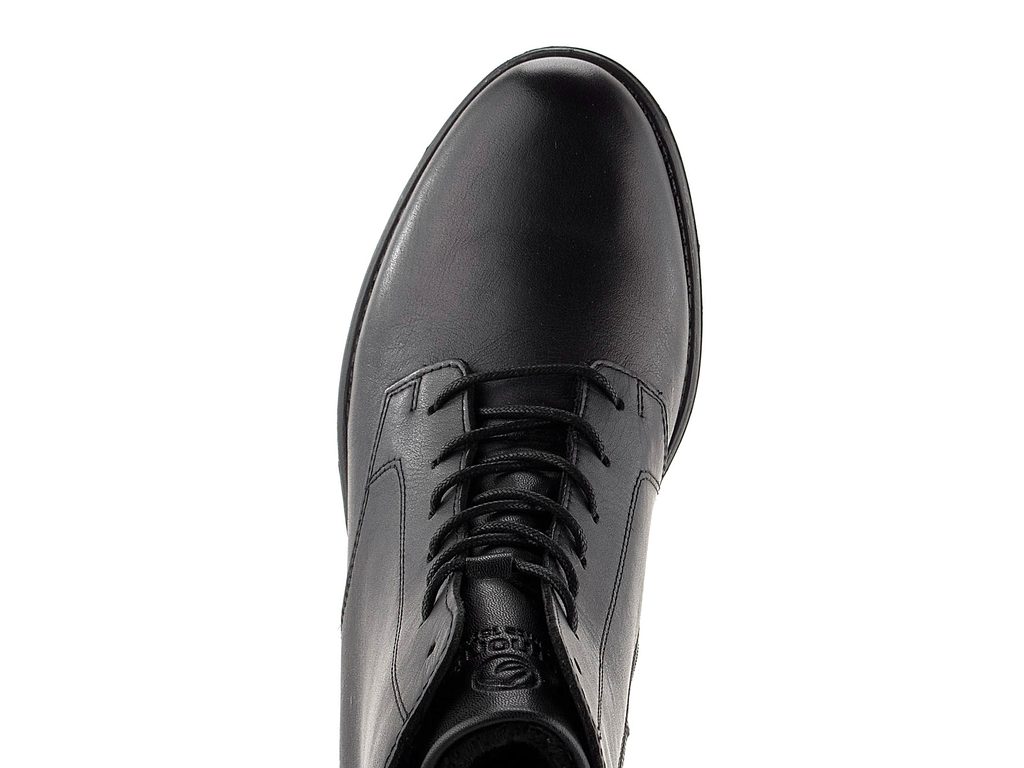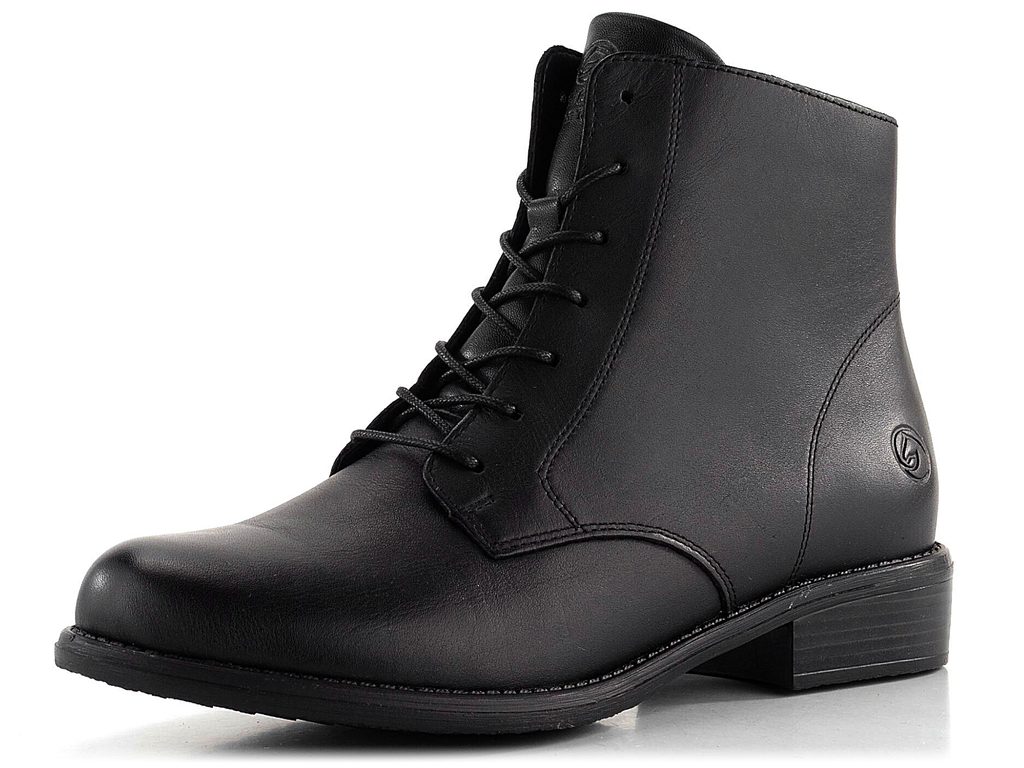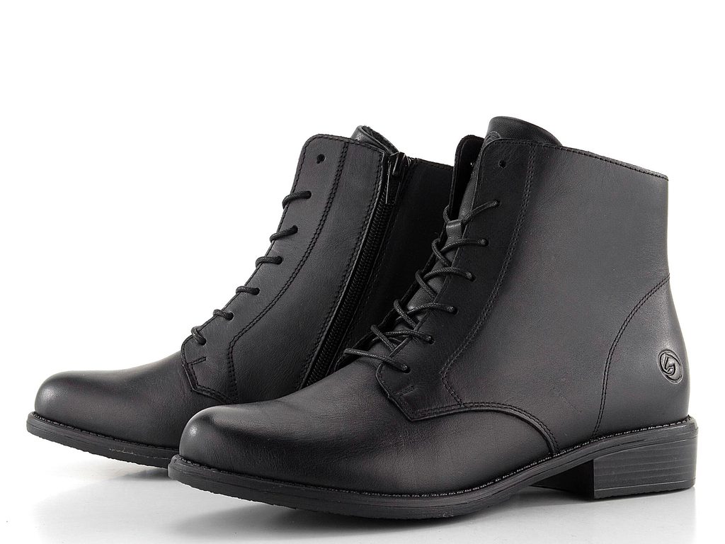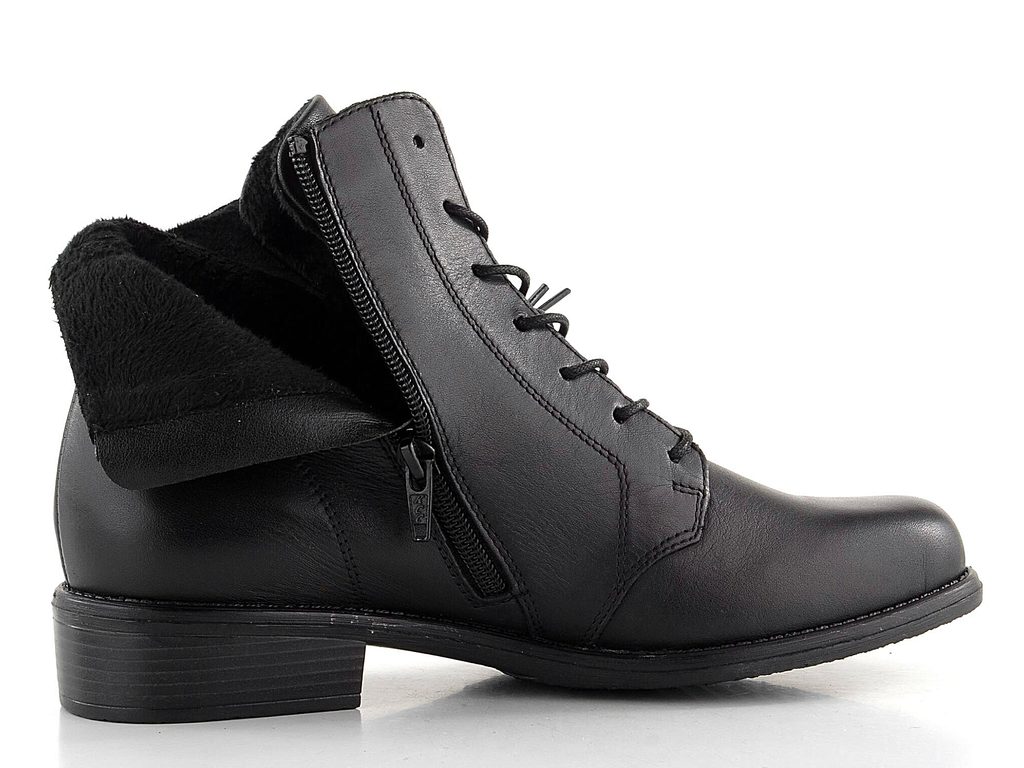 Dámský šněrovací kotník z hladké kůže v černé barvě, s vnitřní teplejší podšívkou a vyjímatelnou stélkou.