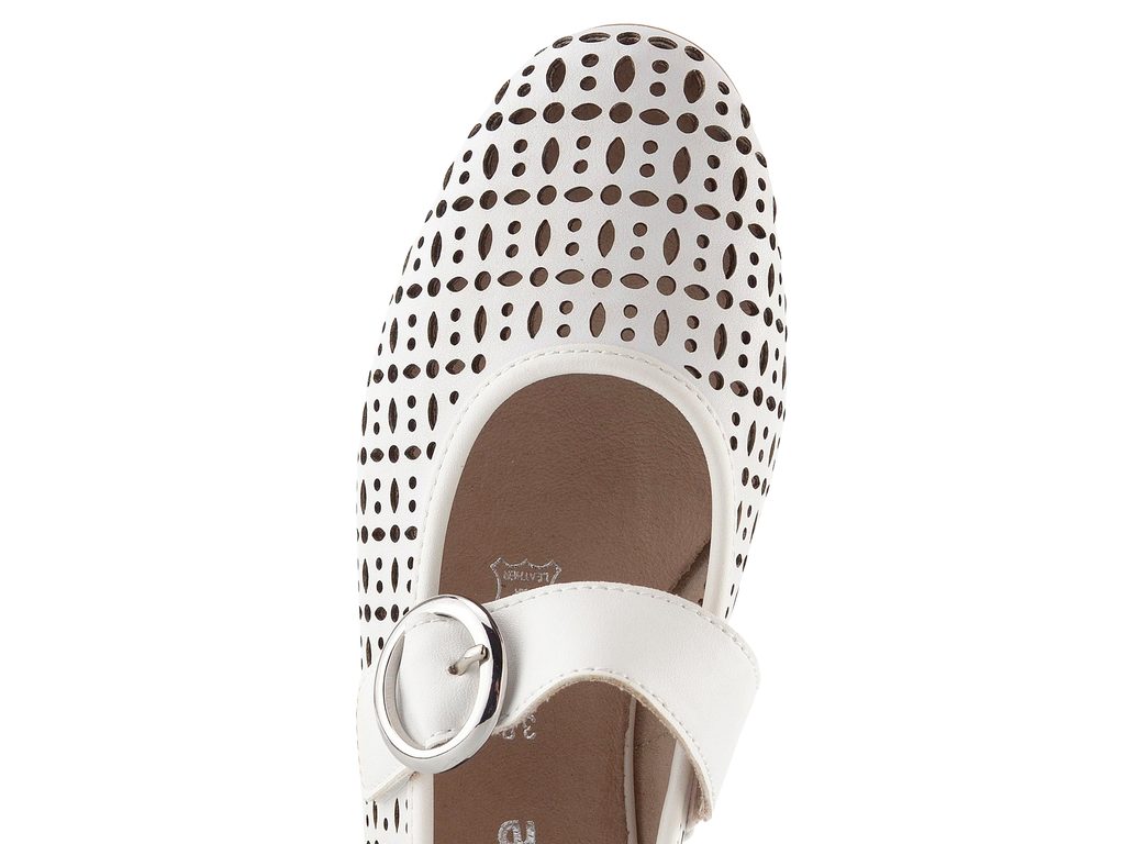 Dámské kožené baleríny v bílé barvě se vzdušným prořezáváním a s upínacím páskem na suchý zip.