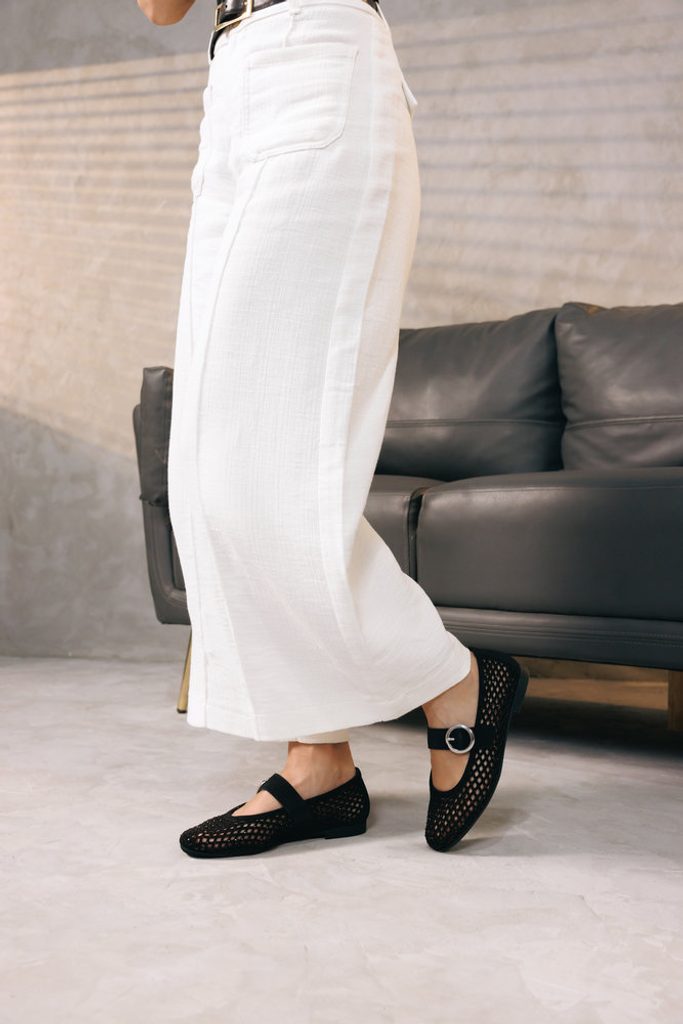 - baleríny vyrobeny ze semišové kůže, pata a nártový pásek ze syntetiky