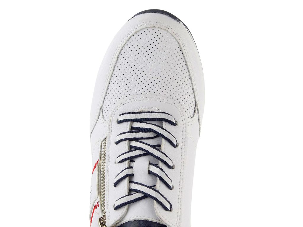 Velmi pohodlné dámské tenisky na klínku v bílé barvě s modrými a červenými doplňky od značky Remonte by Rieker.