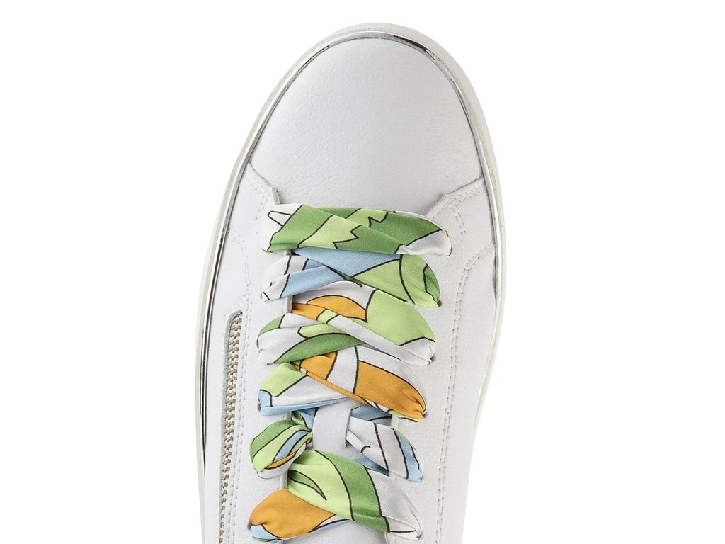 Dámské kožené tenisky na platformě s postranním zipem, metalickými doplňky a barevnými tkaničkami.