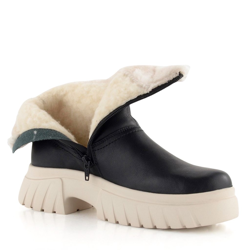 Dámský zimní kotník na vysoké platformě, s teplou vlněnou podšívkou a vodoodpudivou membránou.
