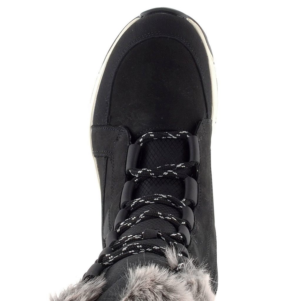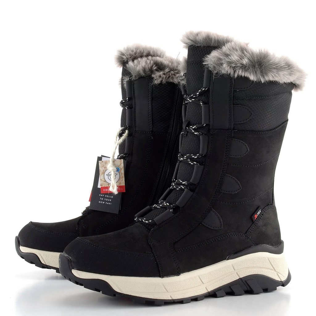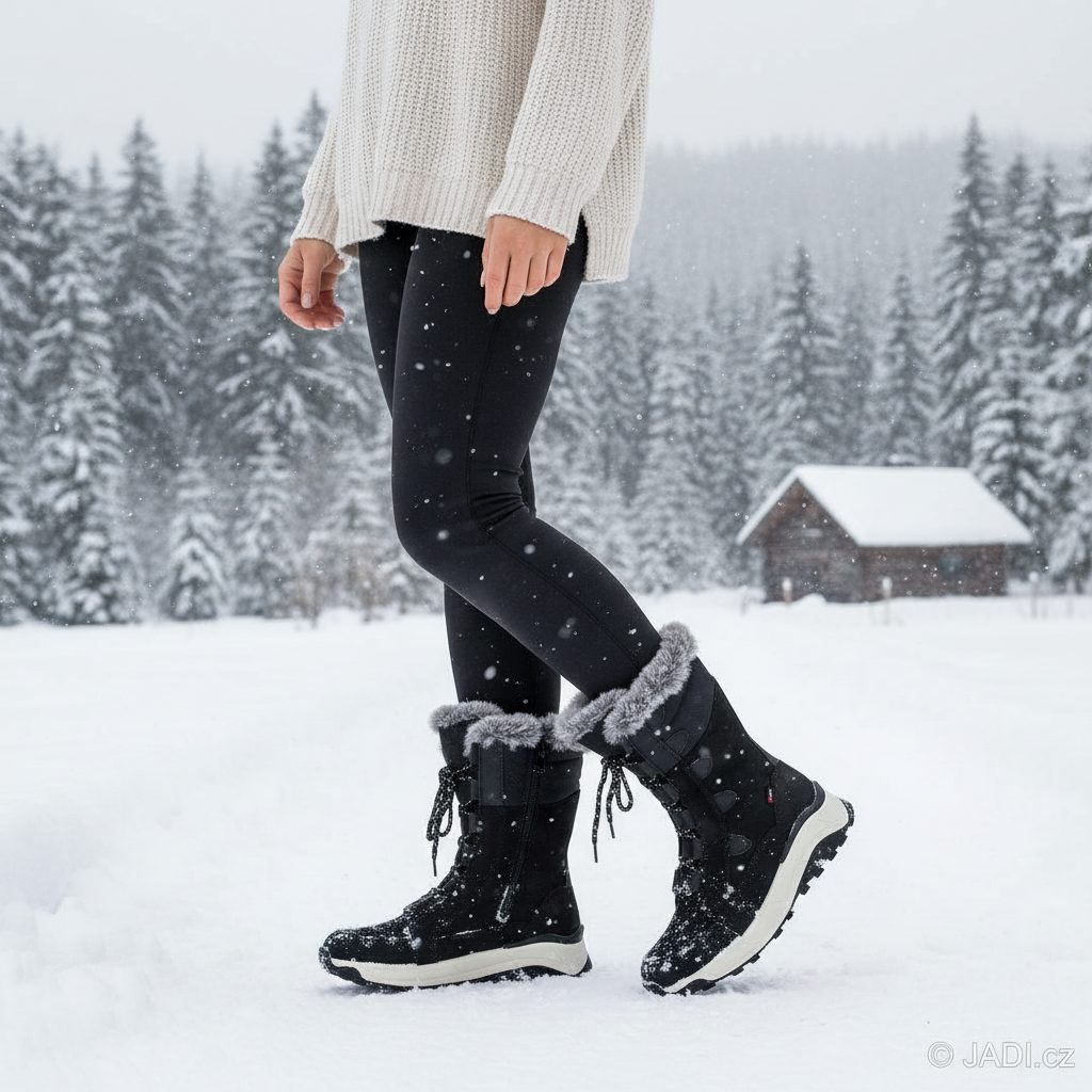 Dámské polokozačky/sněhule v černém provedení s vnitřním vyteplením, funkční membránou a protiskluzovými gripy na podešvi.