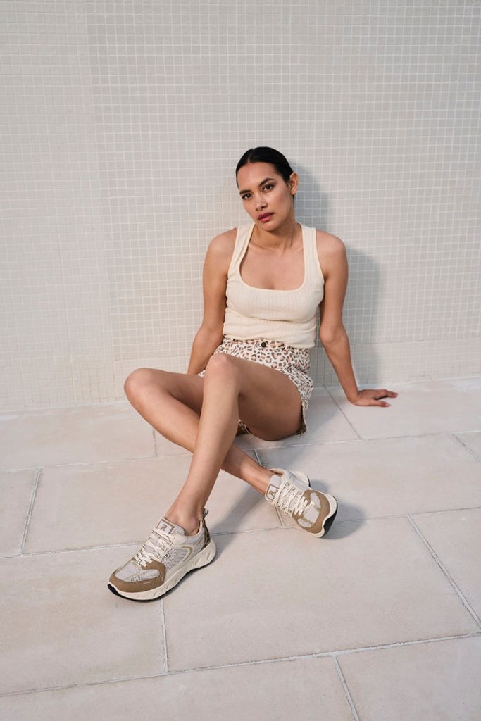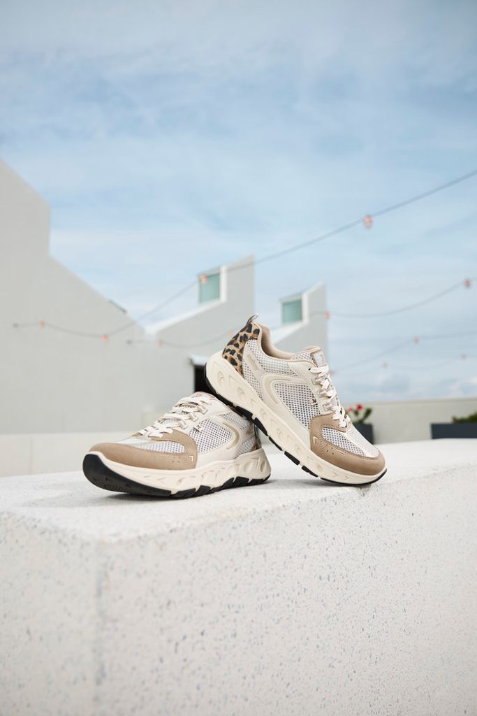 Dámské prodyšné tenisky v béžové barvě s leopardím vzorem na patě a extra měkkou stélkou z paměťové pěny.