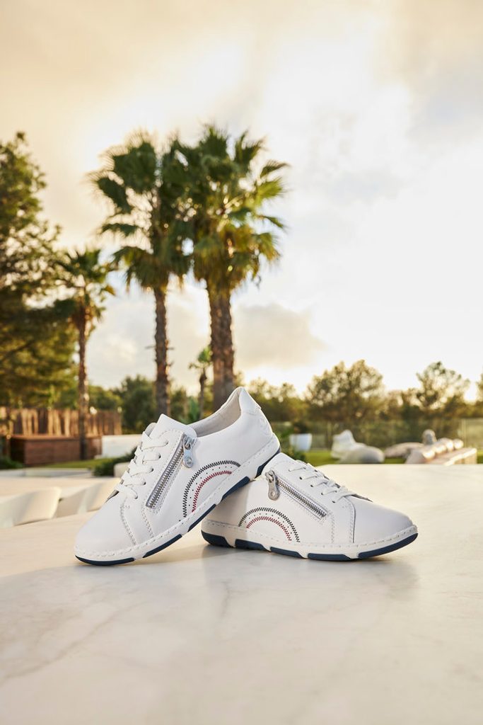 Stylové dámské kožené polobotky - tenisky v extra širokém a komfortním provedení od značky Rieker.