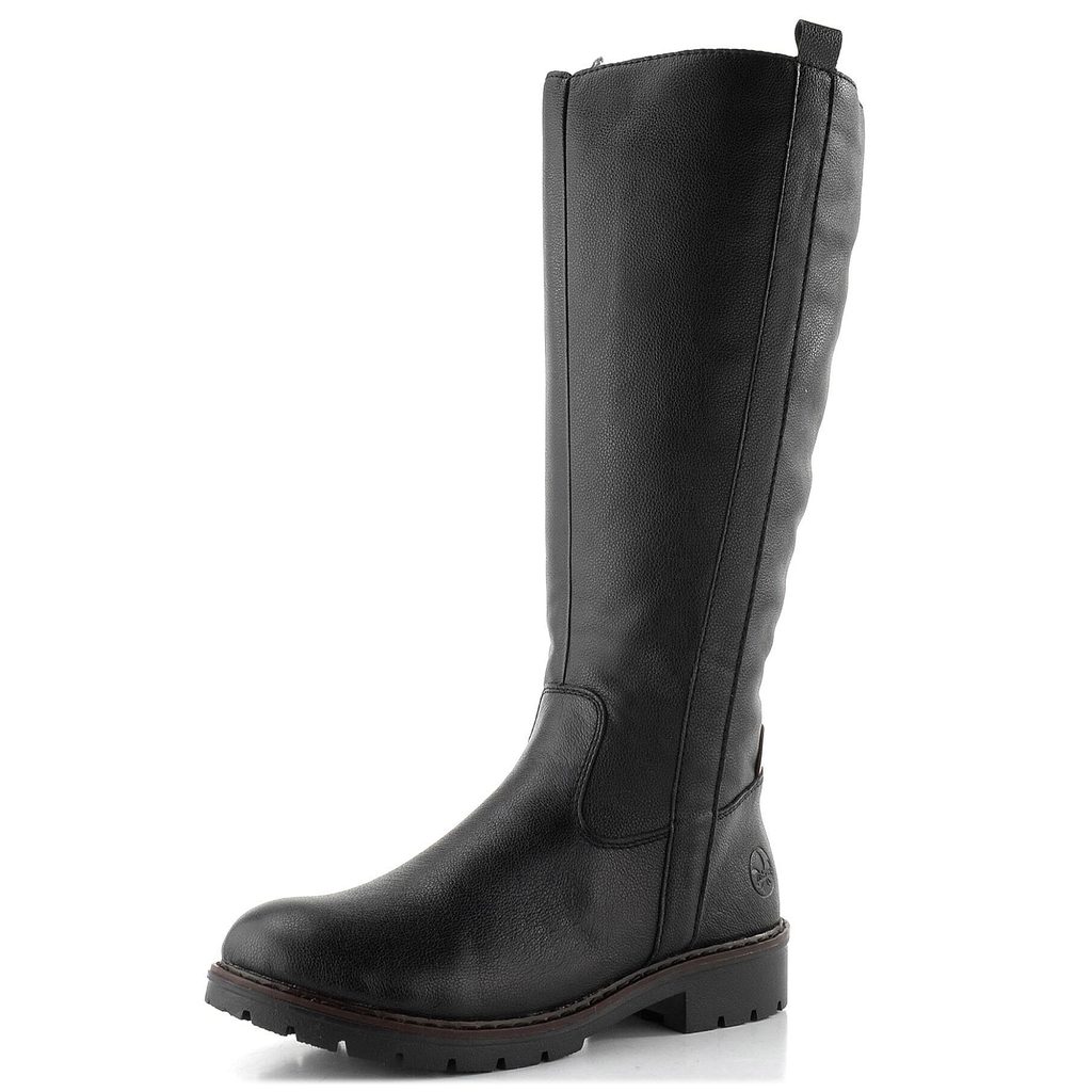 Černé dámské kožené kozačky pro široké lýtko od značky Rieker.