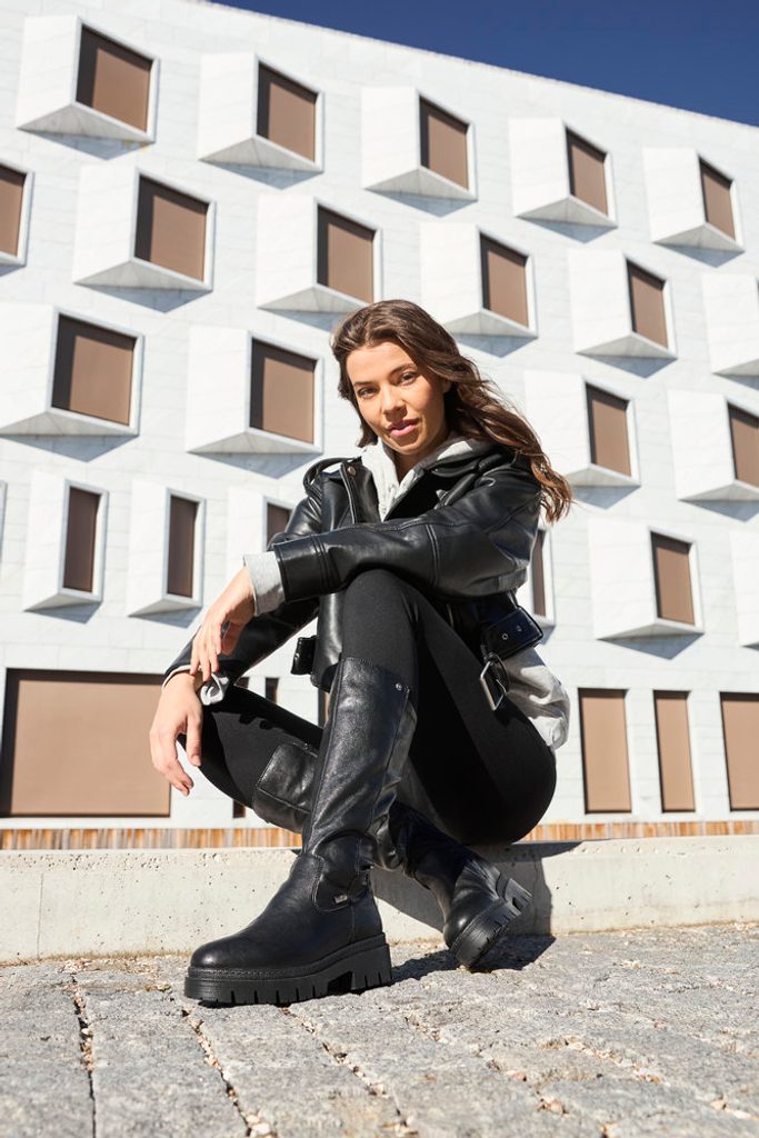 Dámské vyteplené kozačky v jednoduchém provedení s membránou a pružnou lýtkovou částí.