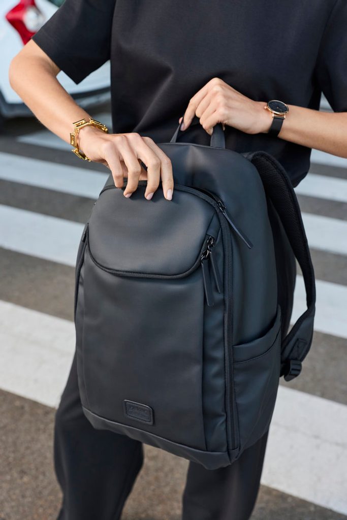 Stylový a prostorný městský batoh v černé barvě se zipovým uzávěrem a vnitřní kapsou na notebook.
