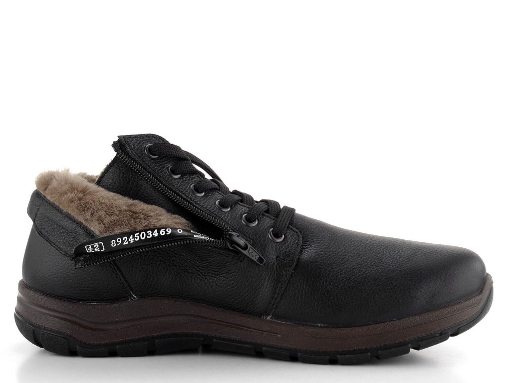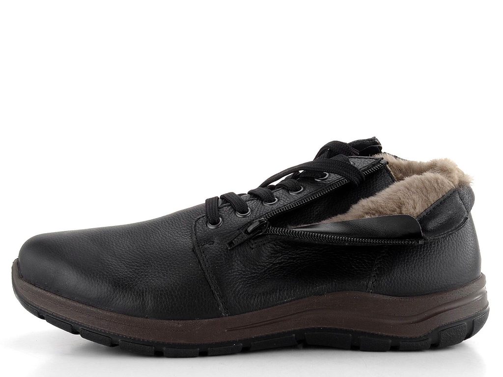 Širší pánský kotník ze strukturované kůže, s vnitřním vyteplením z pravé vlny a dvěma zipy pro snadné obutí.