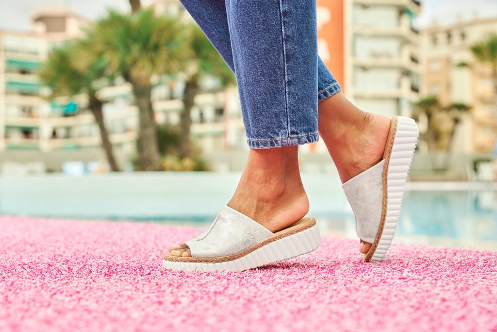 Dámské pohodlné pantofle na vyšší platformě od značky Rieker.