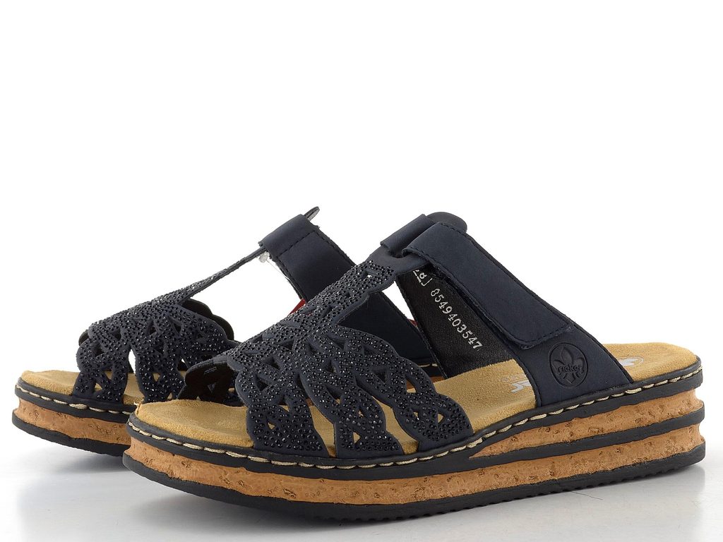 Rieker pantofle na klínku tmavě modré 62986-14 - 40