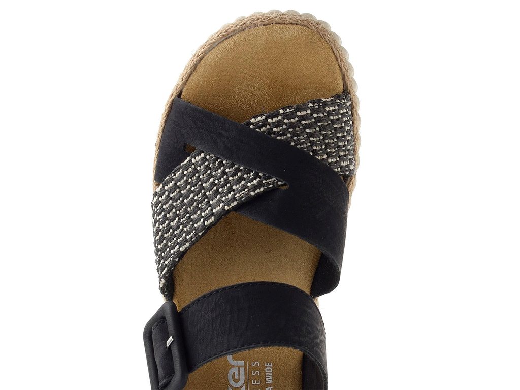 Komfortní sandálky v širším střihu se zapínáním na suchý zip od značky Rieker.
