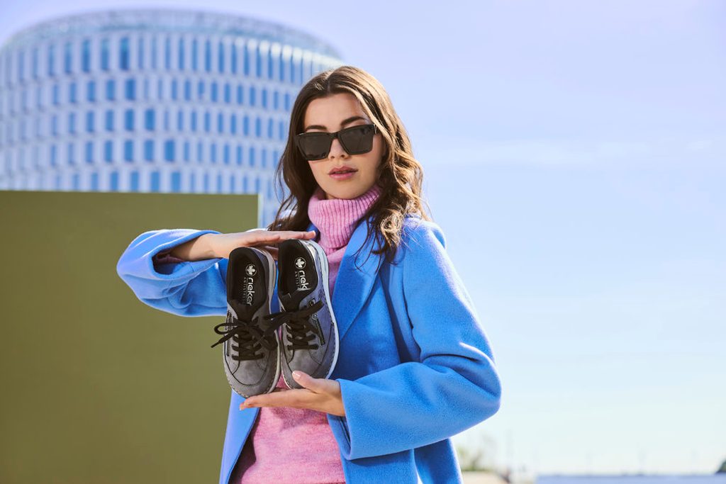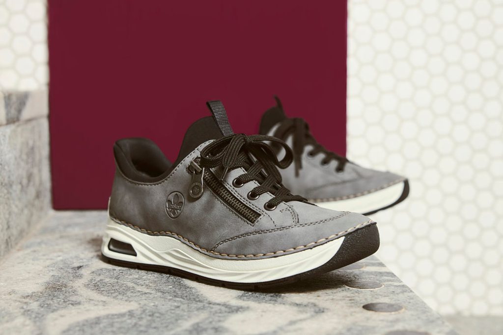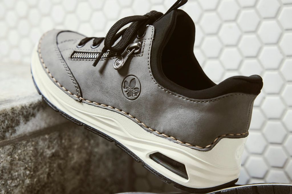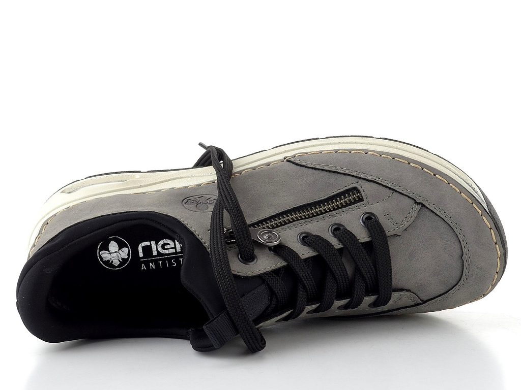 Komfortní dámské vycházkové polobotky s pružným nártem a doplňkovým šněrováním od značky Rieker.