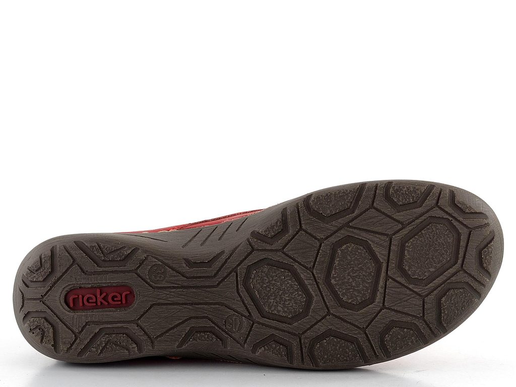 Dámský červený kotník v lehkém a velmi pohodlném šitém provedení od značky Rieker.