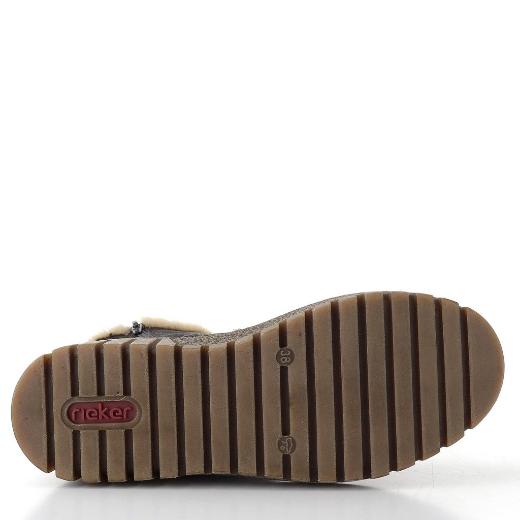 Pěkný dámský model zimního kotníku s teplou beránkovou podšívkou a membránou od značky Rieker.