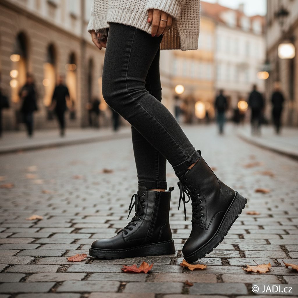 Šněrovací dámský kožený kotník s teplou podšívkou a vyšší platformou.