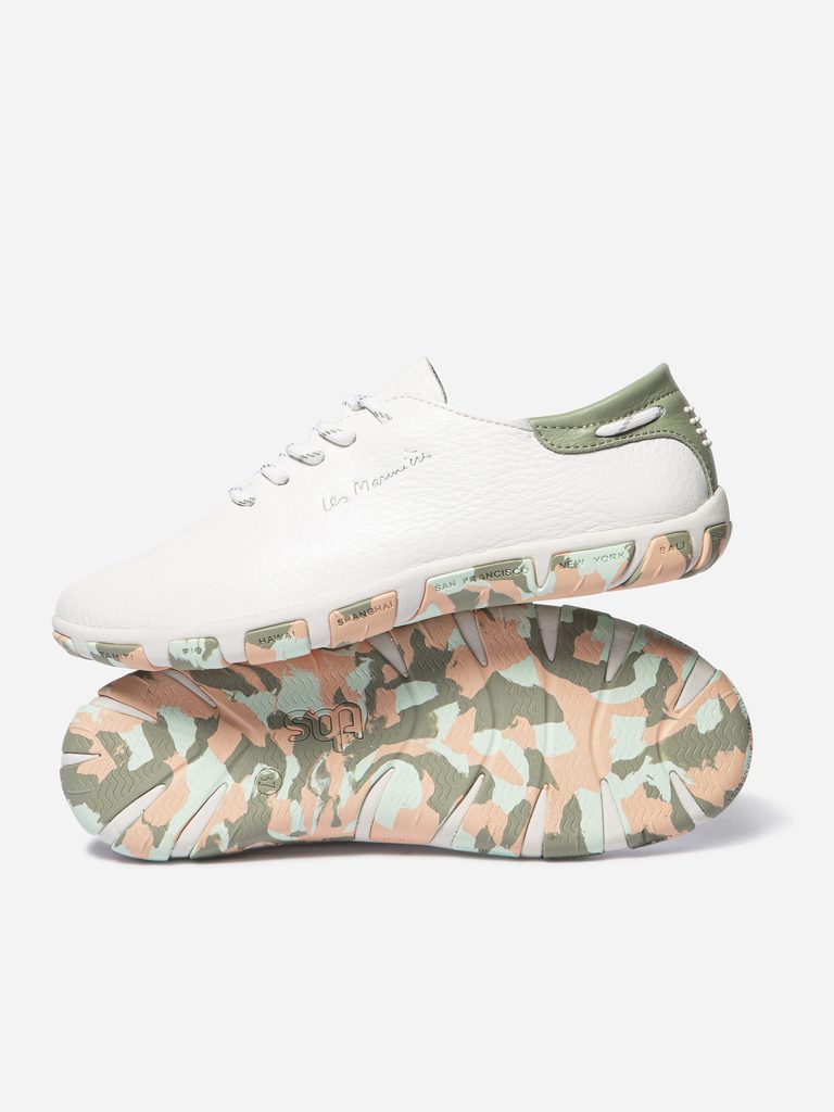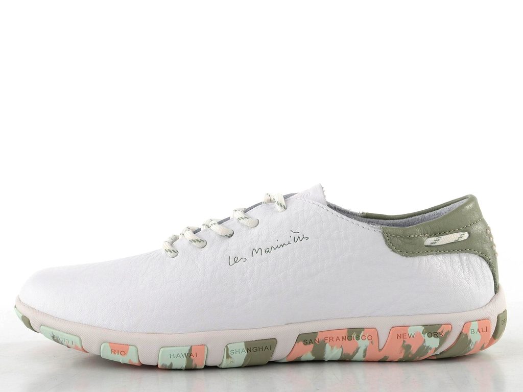 - bílá barva se šalvějově zelenou patní částí a barevnou podešví