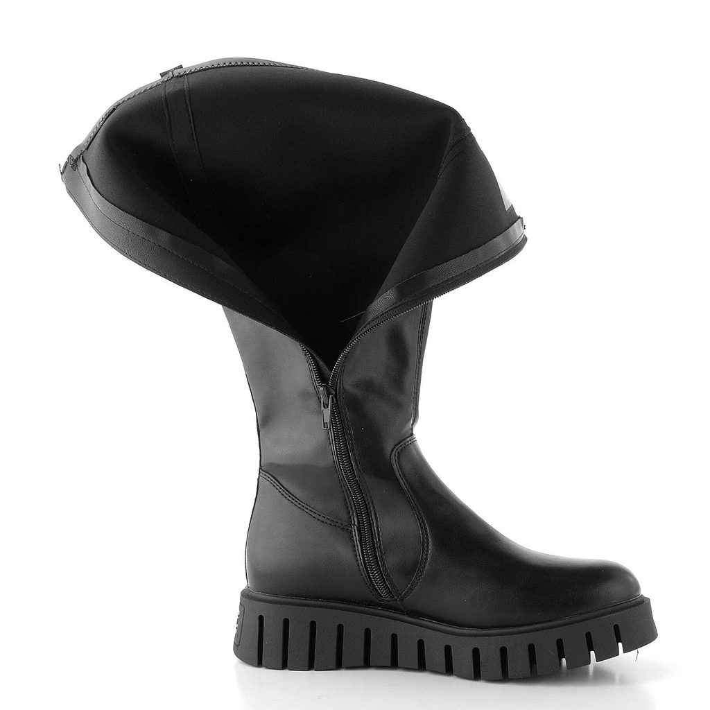 Dámské, mírně zateplené kozačky s pružným lýtkem a módní platformou s hrubým profilem.