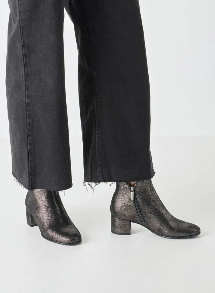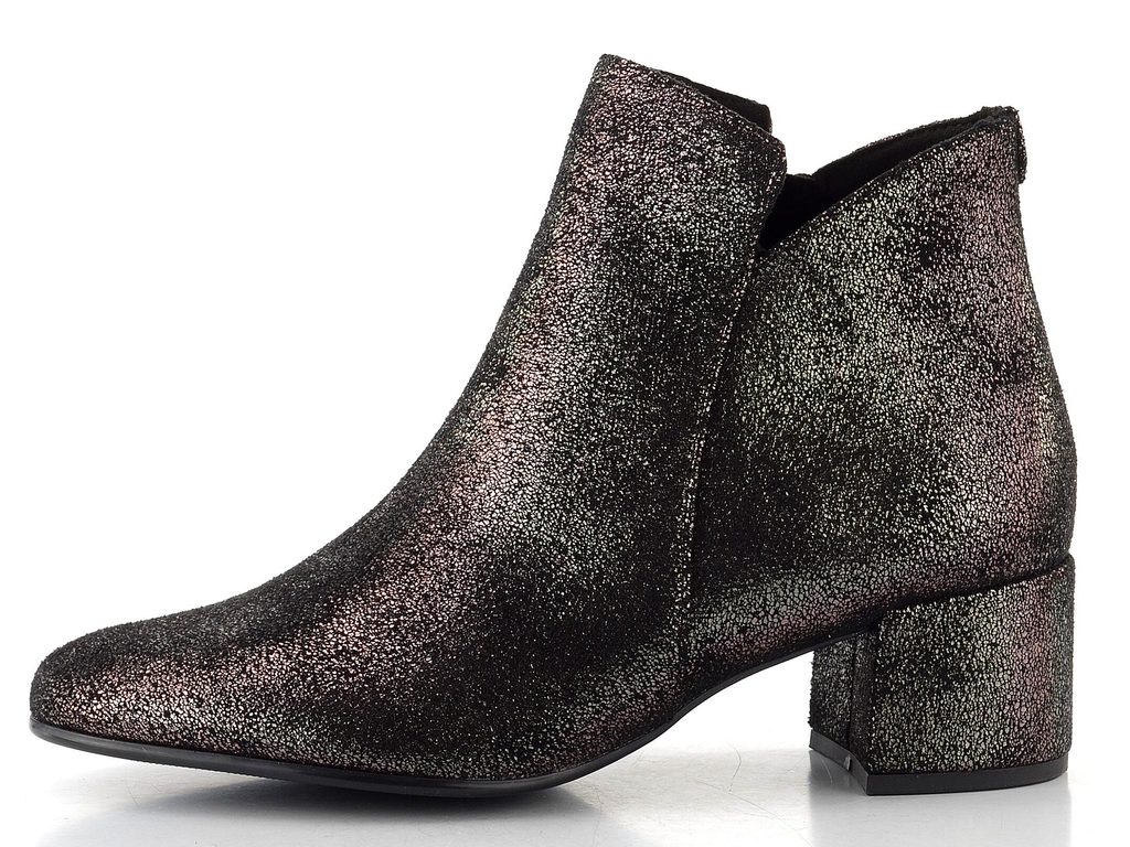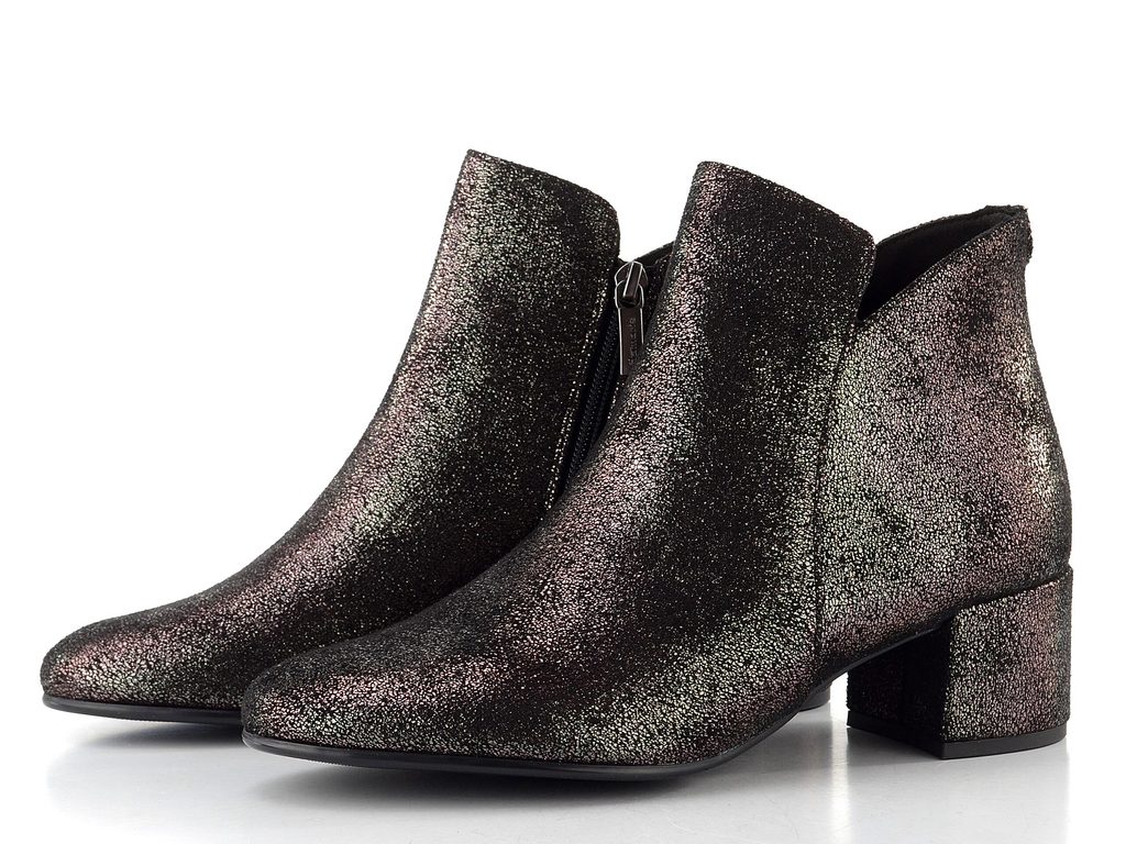 Elegantní dámský kotník ze třpytivé textilie s vnitřním zipem a pohodlným širokým podpatkem .