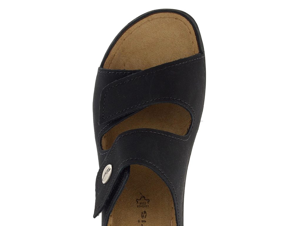 Dámské fuzbetové pantofle v černé barvě s upínacími pásky na suchý zip.