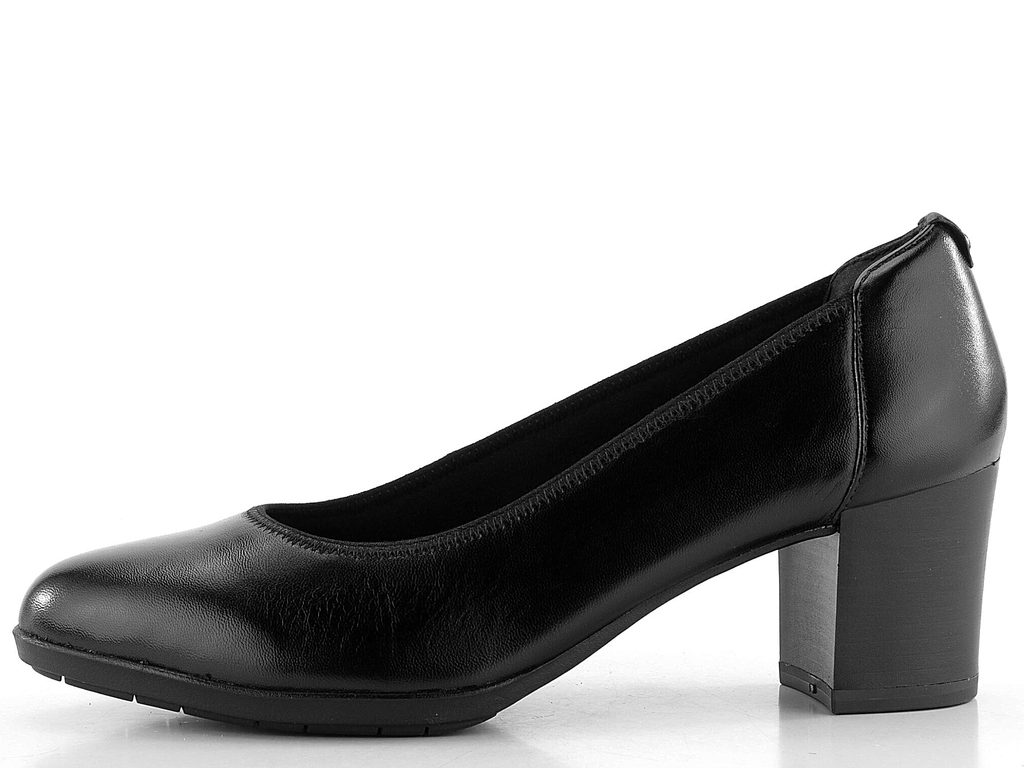 Velmi pohodlné a elegantní dámské lodičky z hladké kůže v černé barvě a v prostornějším vnitřním střihu.