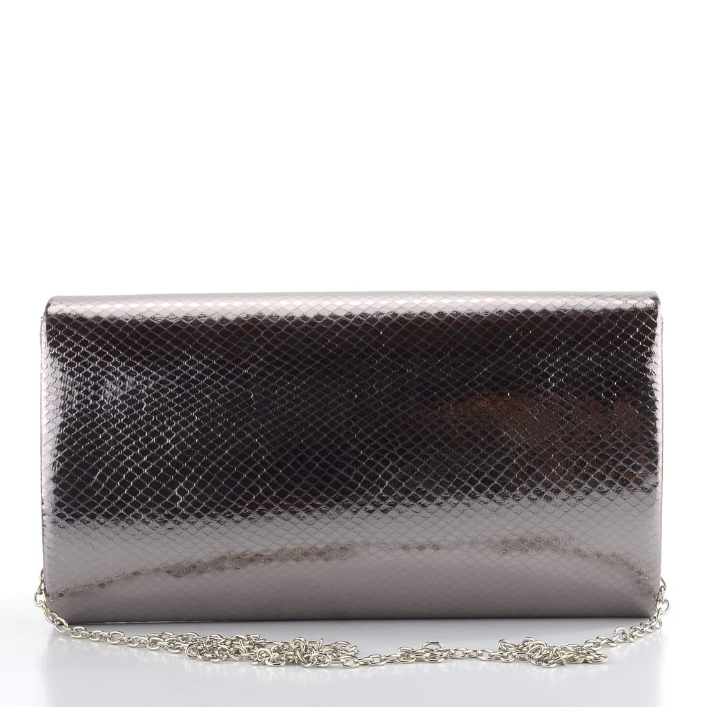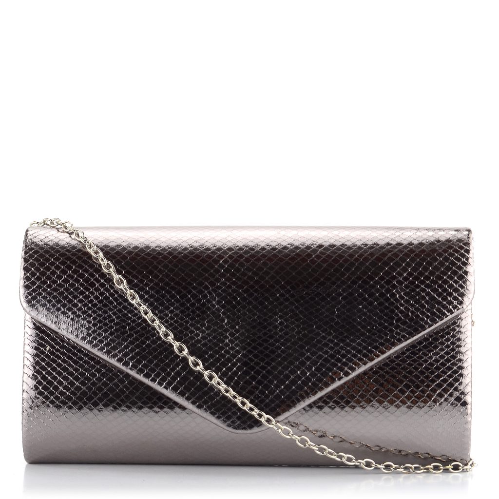 Dámské společenské psaníčko v metalické barvě a s jemným řetízkem přes rameno.