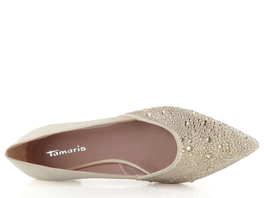Krásně blyštivé módní společenské balerínky ve špičatém střihu od značky Tamaris.