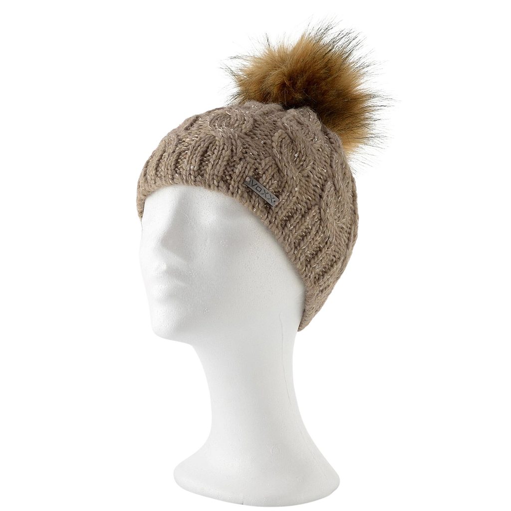 Voxx pletená čepice s flitry a bambulí Astra hnědá 113981, cena: 599 Kč