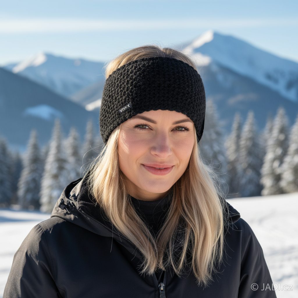 Dámská pletená čelenka v černé barvě od značky Voxx.