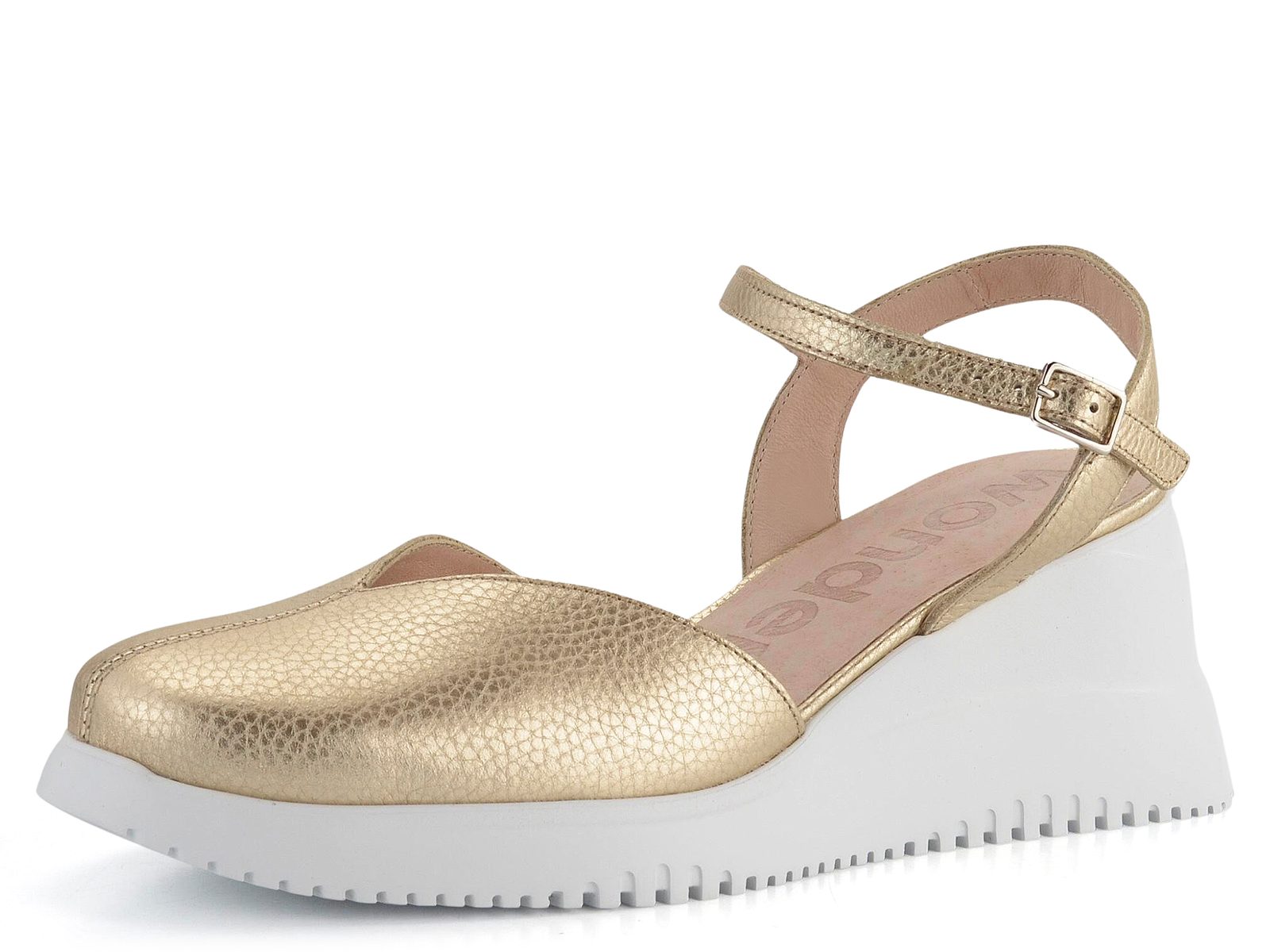 Wonders sandály na klínu s plnou špičkou metalické Platino G-6621